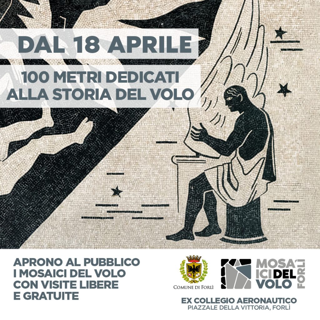 100 metri dedicati alla storia del volo Dal 18 Aprile apre al pubblico un percorso unico: Scopri i suggestivi Mosaici del Volo con visite libere e gratuite Ex Collegio Aeronautico – Forlì Un viaggio tra arte e storia… tutto da vivere! Scopri di più al LINK